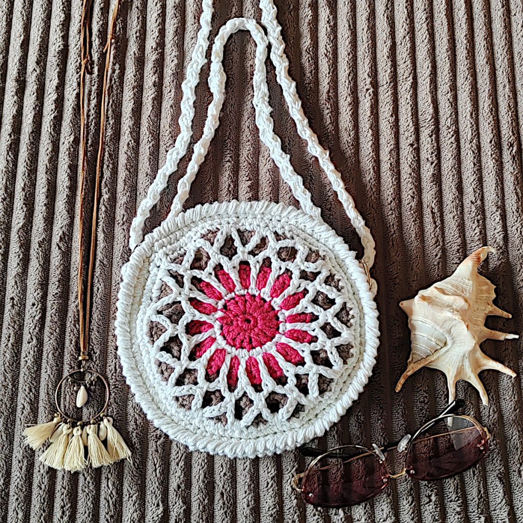 Stained Glass Moonchild torba je upečatljiv, ali nosiv ručno rađeni komad, inspirisan igrom boja i svetlosti vitraža. Heklana je tako da istovremeno bude dekorativna i praktična, što je čini zanimljivim modnim dodatkom za svakodnevne kombinacije. Kao poklon, ova torba donosi dozu kreativnosti i posebnosti.